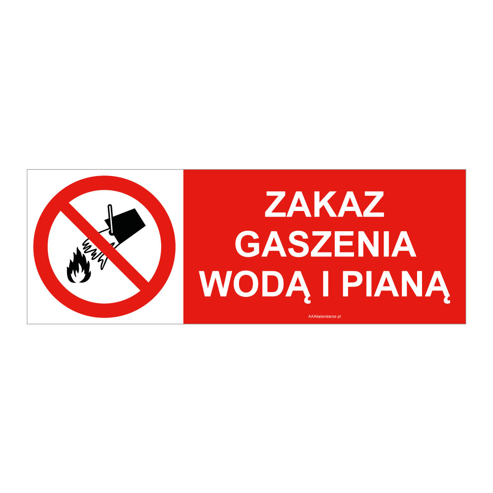 ZAKAZ GASZENIA WODĄ I PIANĄ, płyta PVC 1 mm 105x37 mm