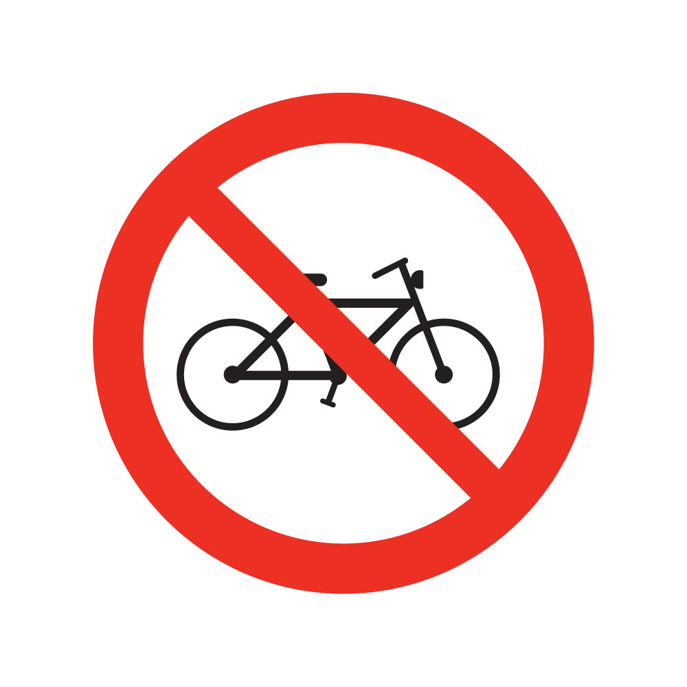 Zákaz jazdy na bicykli - SYMBOL, samolepka 100x100