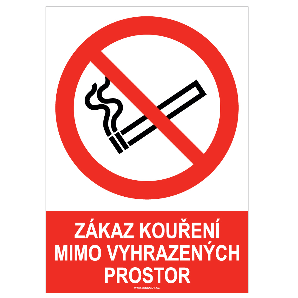 ZÁKAZ KOUŘENÍ MIMO VYHRAZENÝCH PROSTOR - bezpečnostní tabulka, samolepka A5