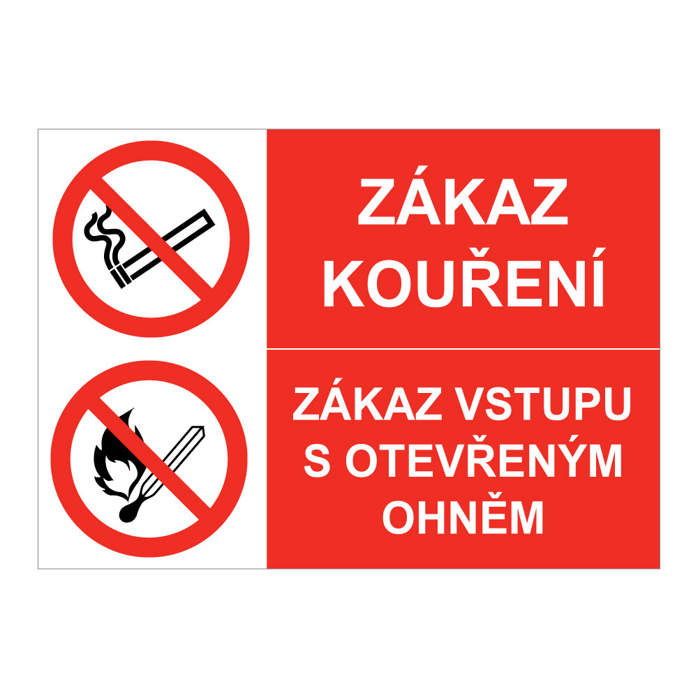 ZÁKAZ KOUŘENÍ - ZÁKAZ VSTUPU S OTEVŘENÝM OHNĚM, KOMBINACE, plast 1 mm, A4