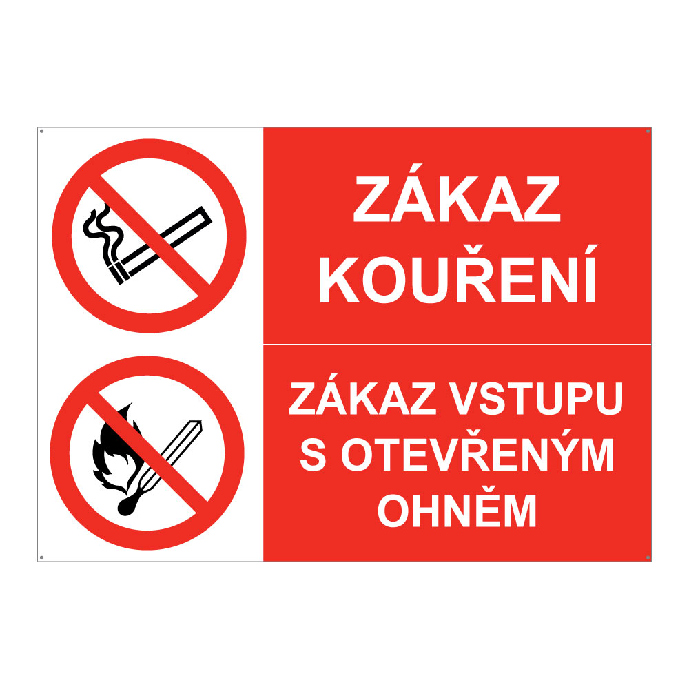 ZÁKAZ KOUŘENÍ - ZÁKAZ VSTUPU S OTEVŘENÝM OHNĚM, KOMBINACE, plast 2 mm s dírkami A4