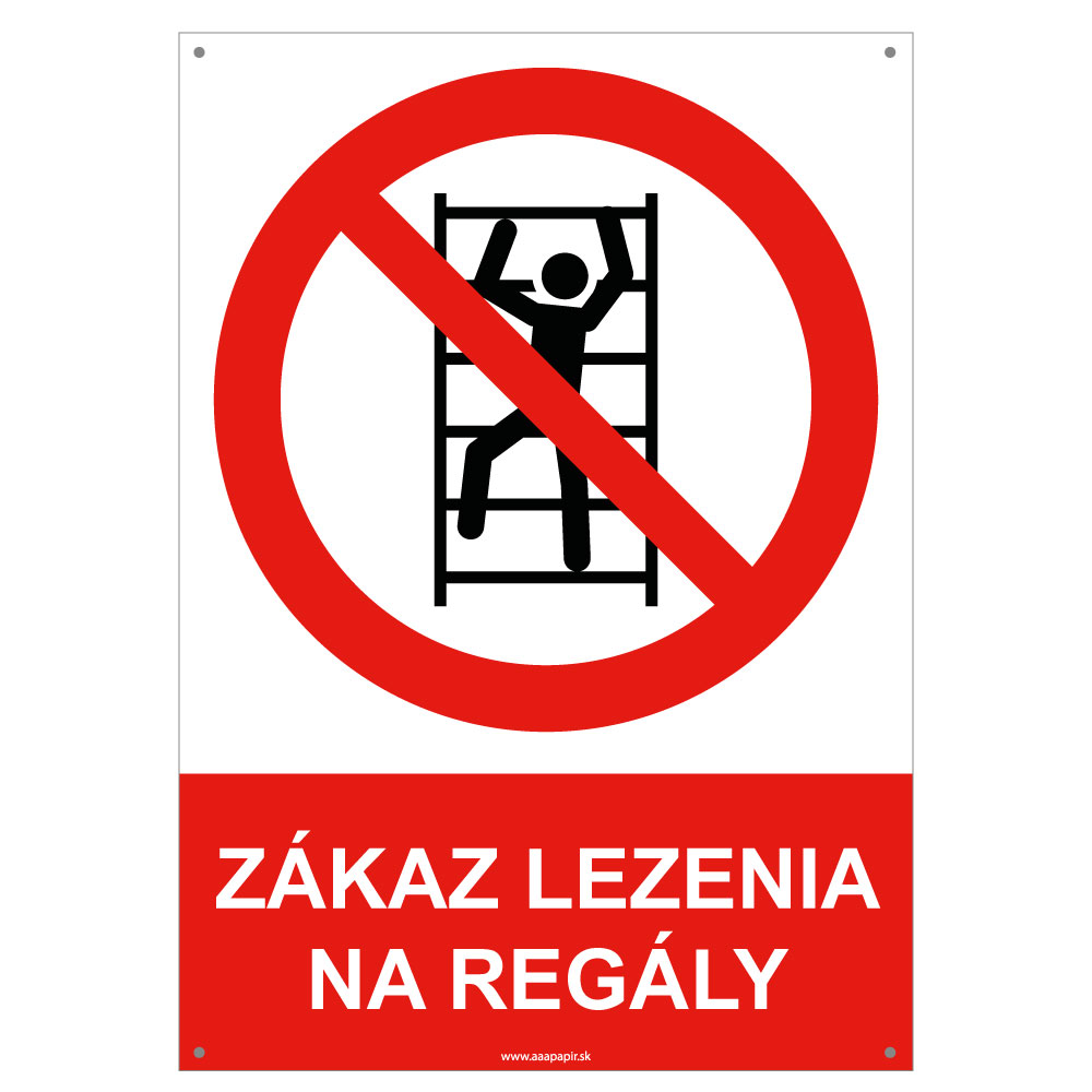 Zákaz lezenia na regály - bezpečnostná tabuľka s dierkami, plast A4, 2 mm