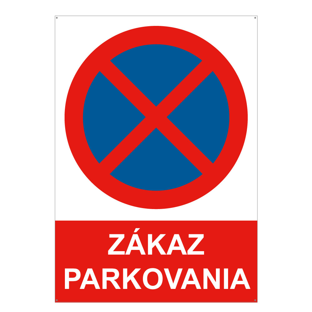 Zákaz parkovania (zastavenia) - bezpečnostná tabuľka s dierkami, plast 2 mm, A4