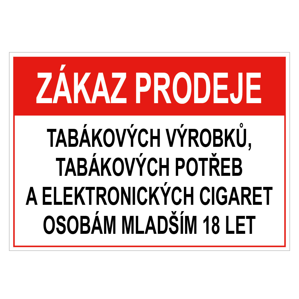 Zákaz prodeje tab. výrobků, potřeb a el. cigaret os. mladším 18let - bezpečnostní tabulka, plast 2 mm, A4