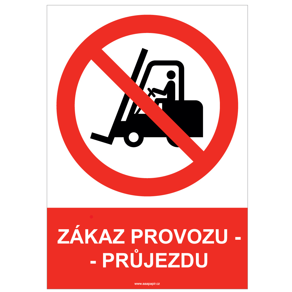 ZÁKAZ PROVOZU - PRŮJEZDU - bezpečnostní tabulka, samolepka A4