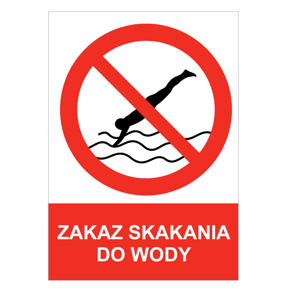 ZAKAZ SKAKANIA DO WODY - znak BHP, płyta PVC A4, 2 mm