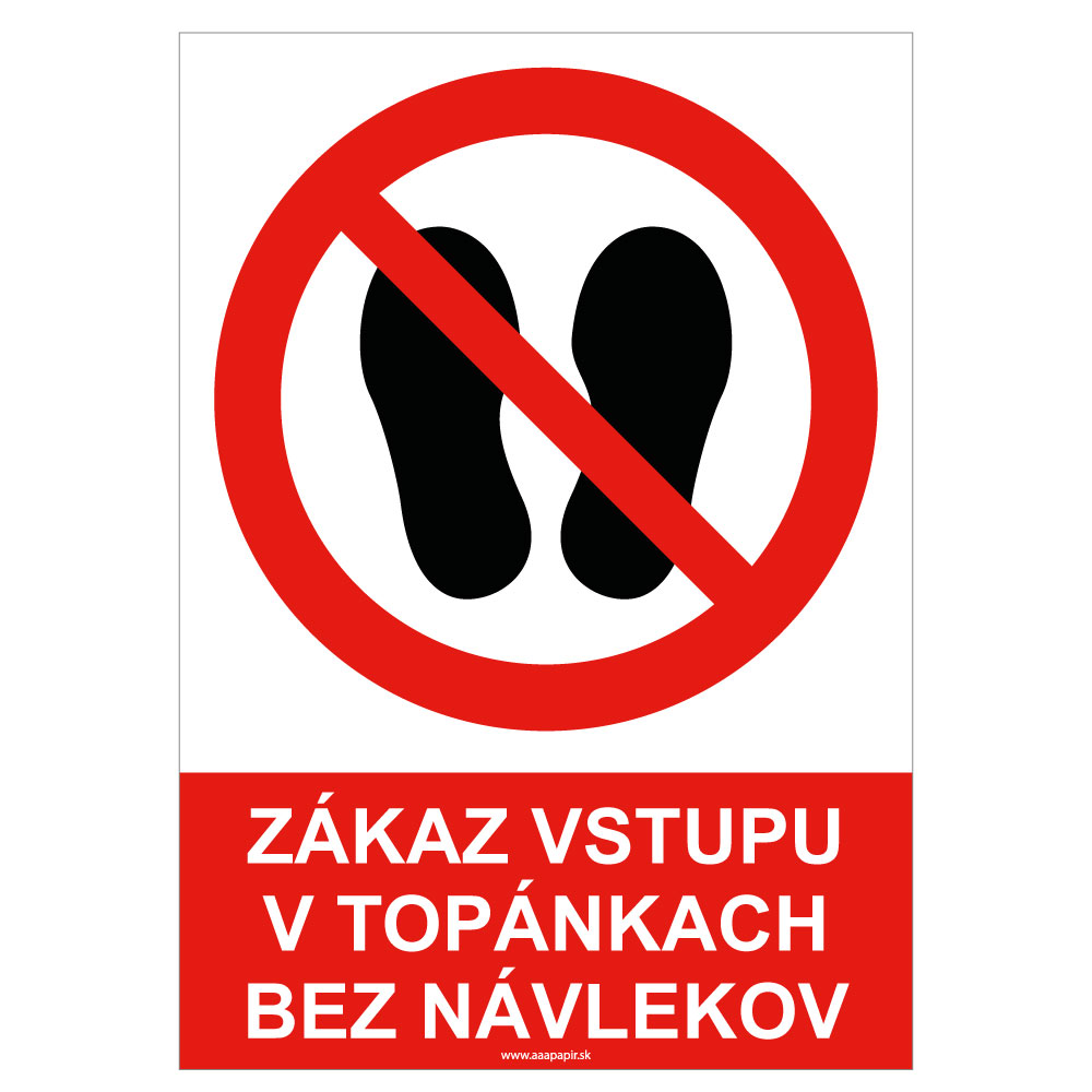 Zákaz vstupu v topánkach bez návlekov - bezpečnostná tabuľka , plast A4, 2 mm