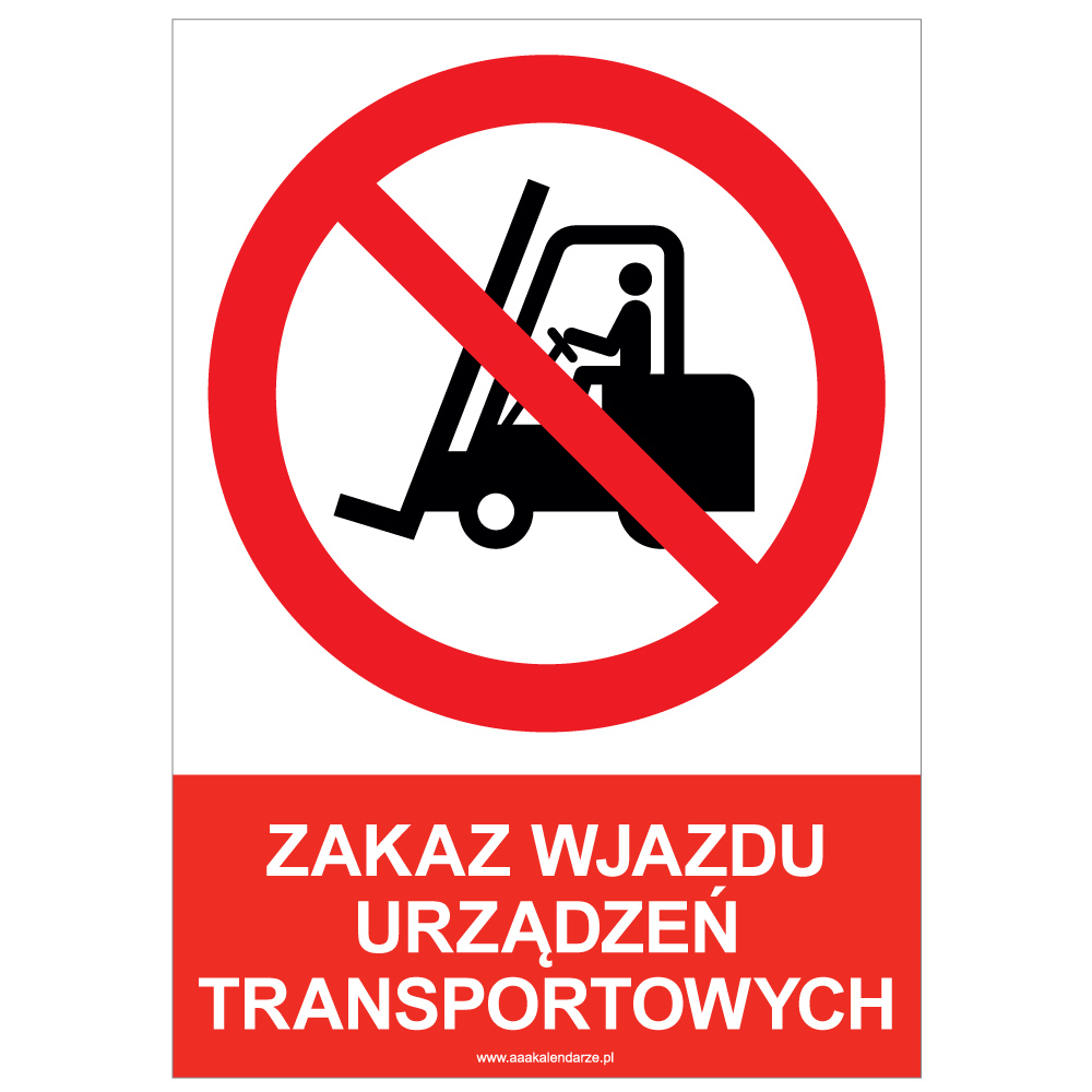 ZAKAZ WJAZDU URZĄDZEŃ TRANSPORTOWYCH - znak BHP, płyta PVC A5, 2 mm