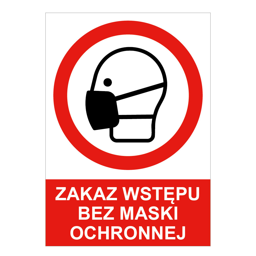 ZAKAZ WSTĘPU BEZ MASKI OCHRONNEJ - znak BHP, 2 mm płyta PVC A4