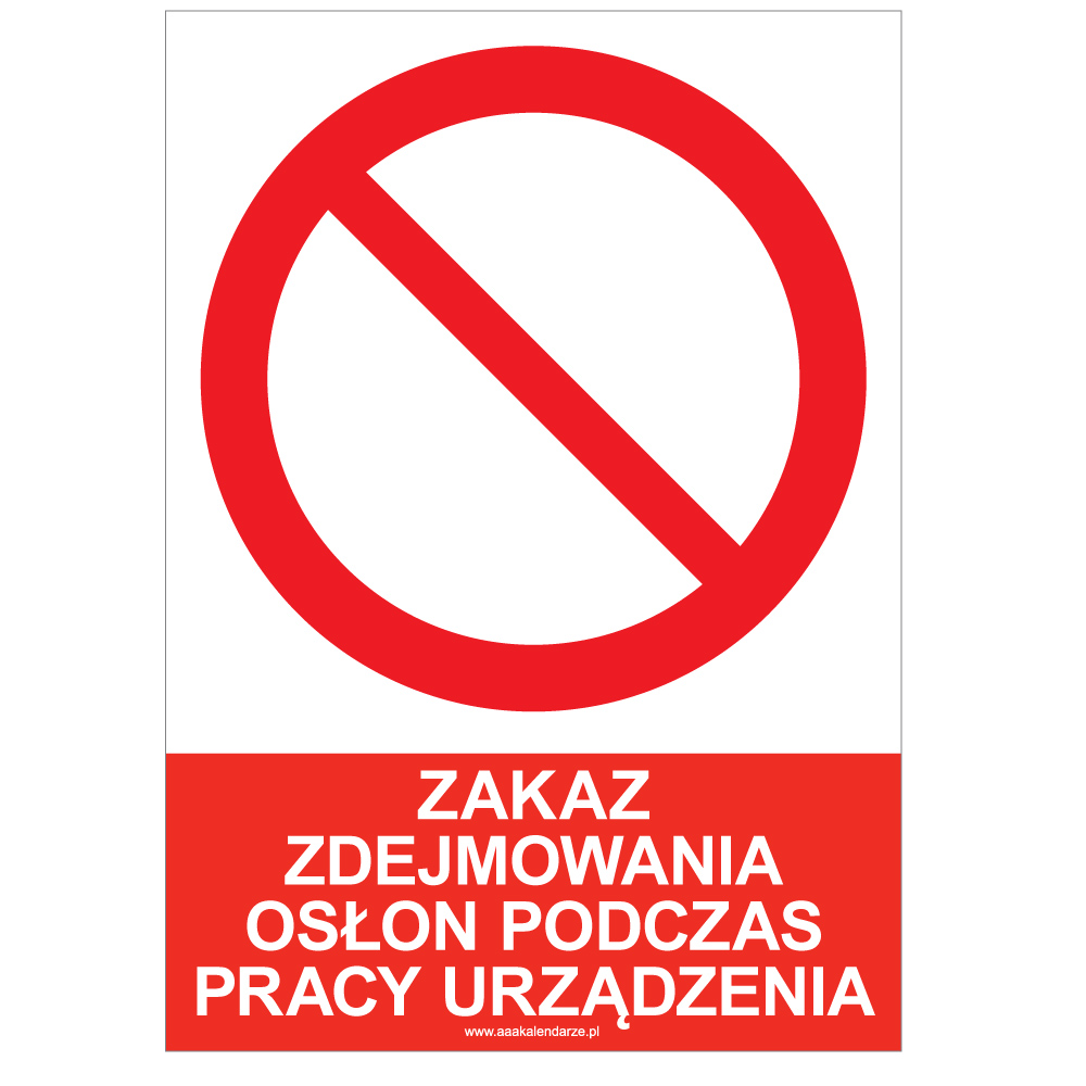 ZAKAZ ZDEJMOWANIA OSŁON PODCZAS PRACY URZĄDZENIA - znak BHP, naklejka A4