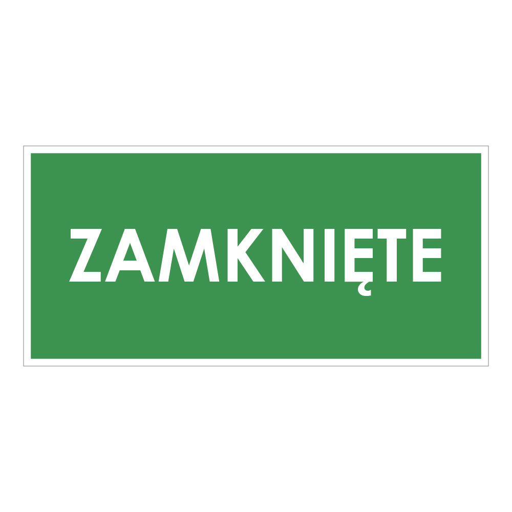 ZAMKNIĘTE, zielony - naklejka 190x90 mm