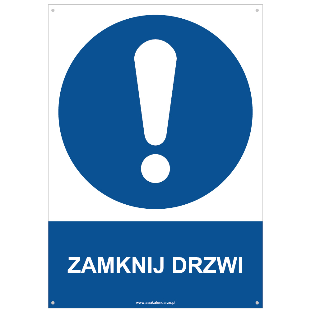 ZAMKNIJ DRZWI - znak BHP z dziurkami, płyta PVC A4, 2 mm