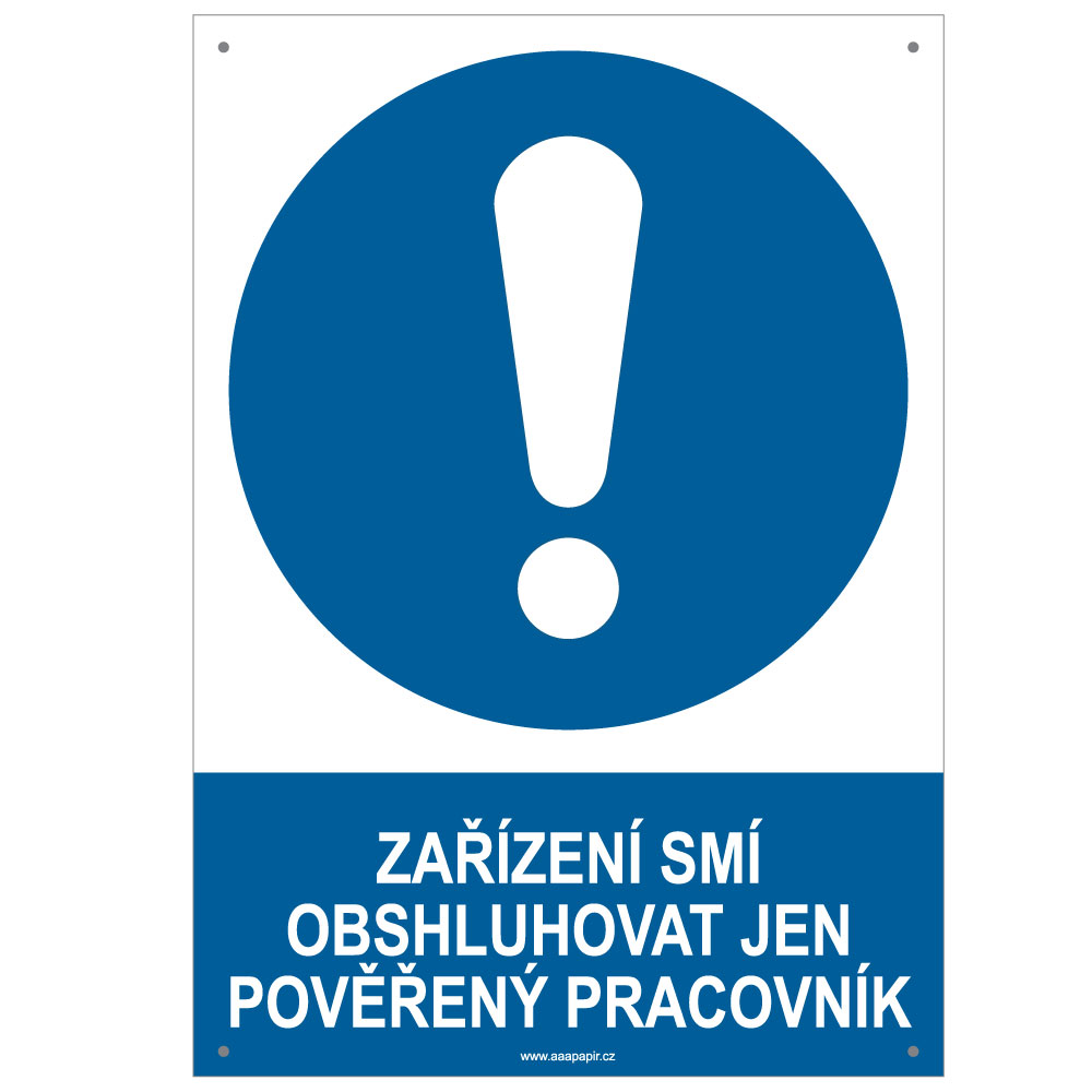 ZAŘÍZENÍ SMÍ OBSLUHOVAT JEN POVĚŘENÝ PRACOVNÍK - bezpečnostní tabulka s dírkami, plast A4, 2 mm