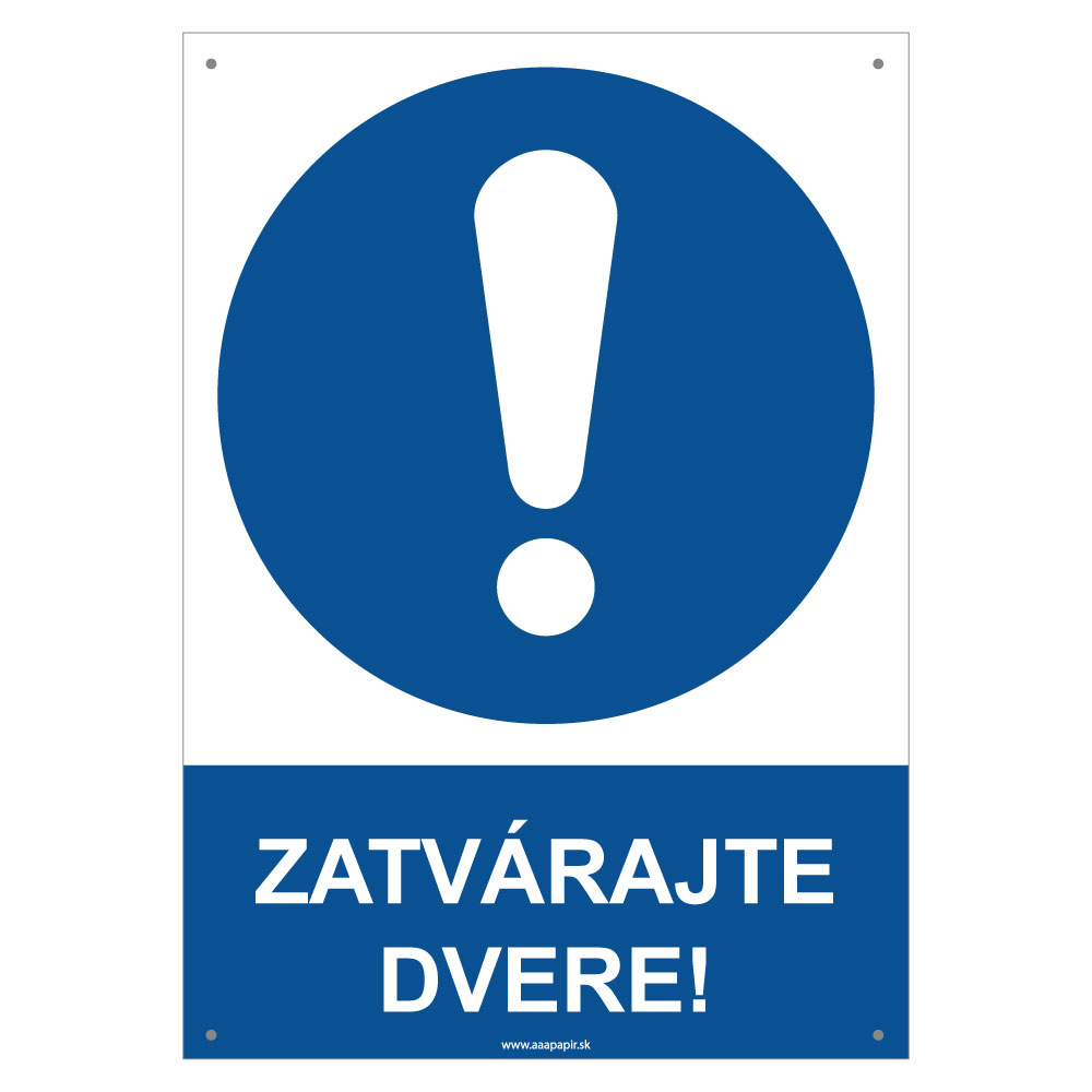 Zatvárajte dvere! - bezpečnostná tabuľka s dierkami, plast 2 mm - A4
