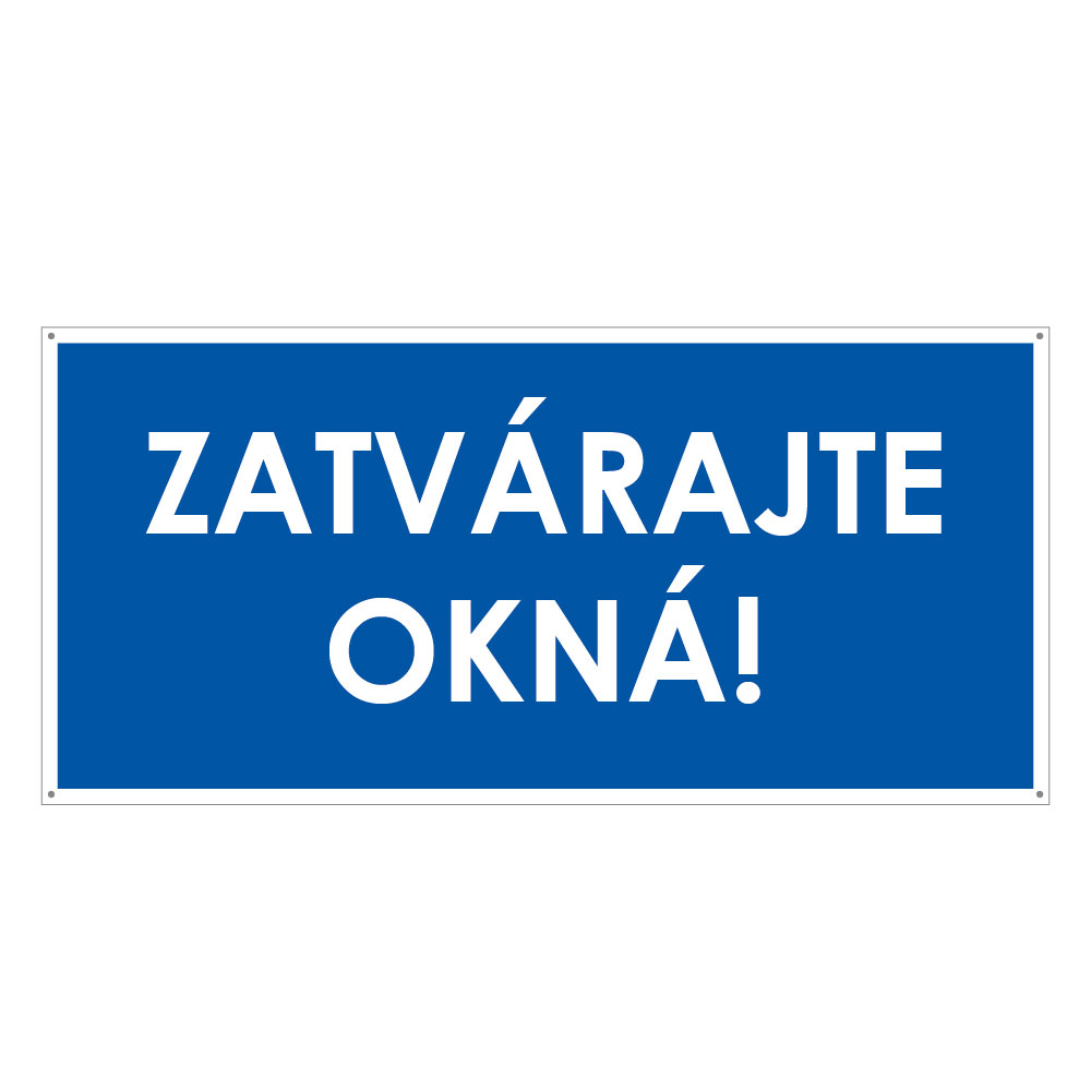 Zatvárajte okná!, modrá, plast 2mm s dierkami-190x90mm