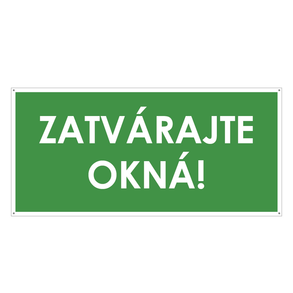 Zatvárajte okná!, zelená, plast 2mm s dierkami-190x90mm