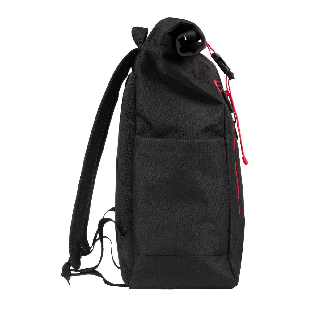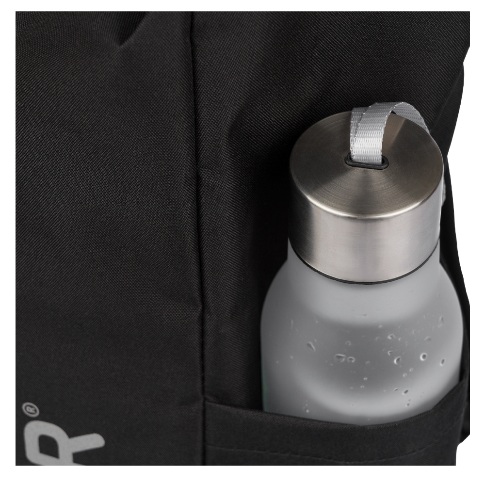 • Batoh má mimo hlavný priestor aj dve postranné vrecká a jedno vrecko na zips v prednej časti.
