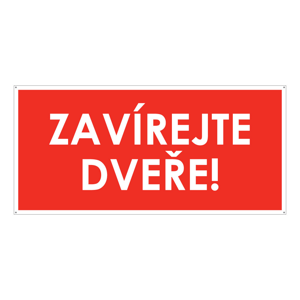 ZAVÍREJTE DVEŘE!, plast 2 mm s dírkami 190x90 mm