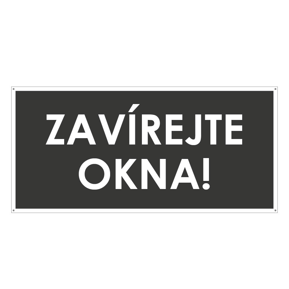 ZAVÍREJTE OKNA!, šedá, plast s dírami 2 mm 190x90 mm