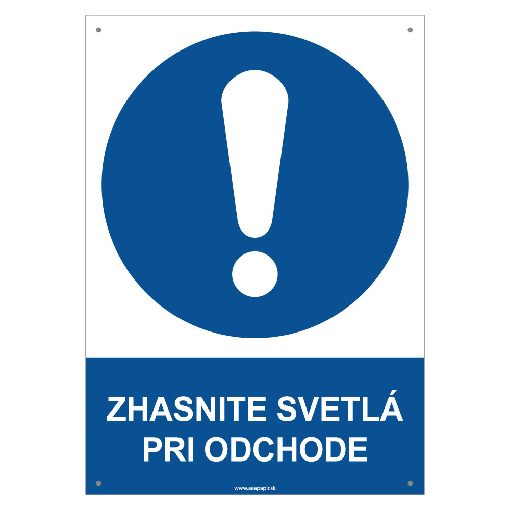 Zhasnite svetlá pri odchode - bezpečnostná tabuľka s dierkami, plast 2 mm - A4