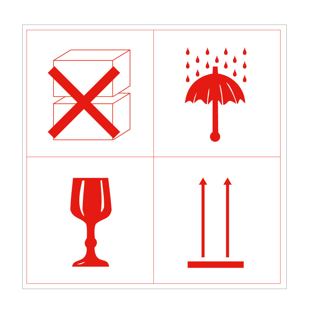 Značenie obalov-kombinácia-červené značenie, samolepka 150x150mm