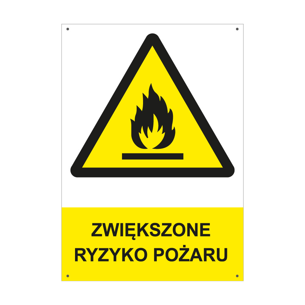 ZWIĘKSZONE RYZYKO POŻARU - znak BHP z dziurkami, płyta PVC A4, 2 mm